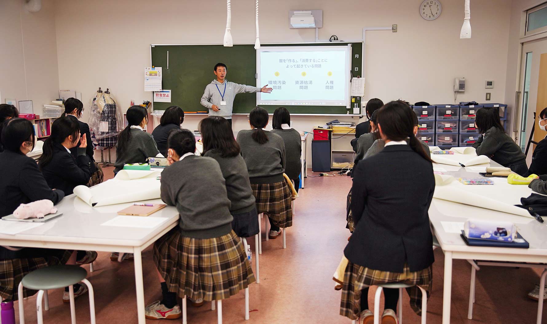 京華女子高等学校にて「服」と「環境」をテーマにした出前授業を実施