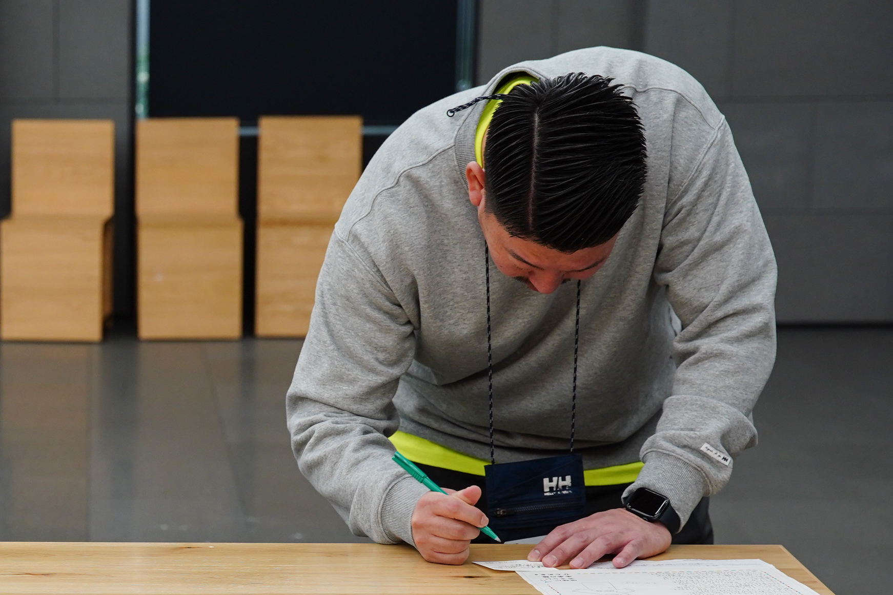 一つひとつの作品に、当展示会サポーターの中里唯馬さんと、当社スタッフからのフィードバックコメントが添付されています。当社からのメッセージは縫製現場で働く従業員から取締役まで多くの者が参加しています。