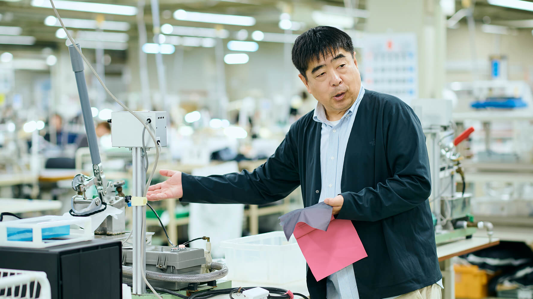 “The Toyama Head Office’s production share is actually very small—less than 1% of the total. Our job is to develop techniques for precisely sewing high-value products. We first create the finest products at the Toyama Head Office, and then properly train staff at overseas factories to mass produce them with the same level of quality.” (Miyashita)