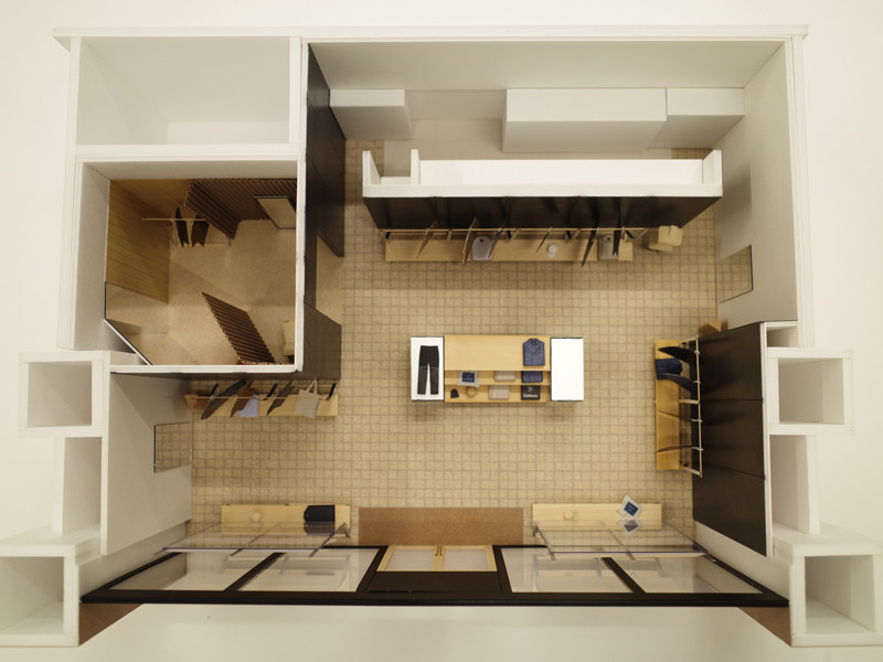 Representations of chi in two senses—the earth as it implacably marks the passing eons, and the wisdom that spurs the Goldwin brand to constant evolution—are thus woven together by the presence of wind sweeping across the entire space. By harmonizing the depth of time spoken of by the materials and the resolute will palpable in the details, we sought to convey the spirit of the brand, breathe a fresh wind into the souls of visitors, and present a future for Goldwin as a brand that continues to change with the times.