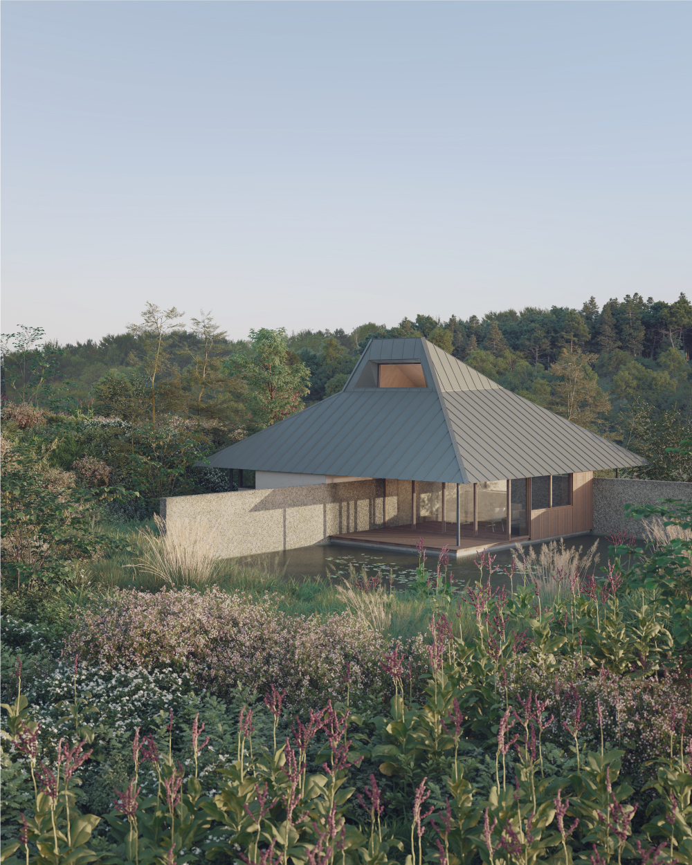 ヴィラは南砺市の散居村からインスピレーションを受け、自然の営みに没入する空間をデザインしました。東西南北に張り出した壁と修景池に浮かぶ船のようなデザインが特徴のヴィラには、美しいプライベートガーデンが広がります。夕日や星空、雨など時間ごとの美しい自然の表情を眺め、花々や虫、鳥の声に耳を傾ける時間を提供します。自然の営みを感じられる特別な時間であり、食事やサウナなど、ヴィラでの滞在体験を通じて、自然に没入できる時間を贅沢に楽しむことができます。