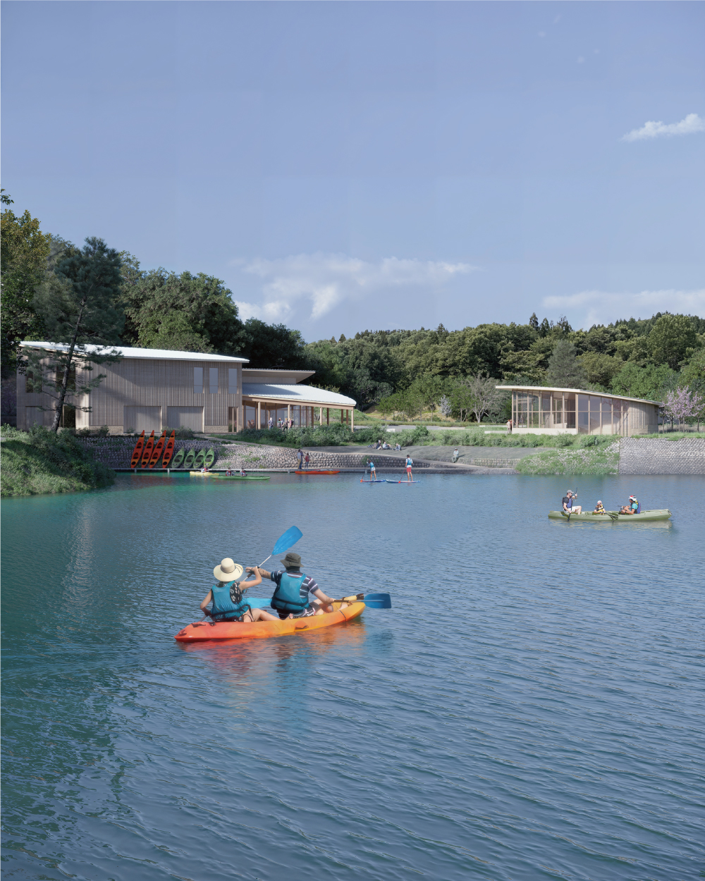 桜ヶ池の水辺にアウトドアでの遊びの拠点となる、アクティビティセンターをつくります。アウトドアショップやカフェベーカリーが隣接し、池につながるデッキから桜ヶ池でのアクティビティを楽しむことができます。富山周辺の自然でのアウトドア・アクティビティをサポートする、ウェアやギアのレンタルやガイドツアーも提供します。地域の人々が日常的に桜ヶ池を訪れ、遊びや体験を通して地域の自然への理解を深めていくことができる機会を創出します。