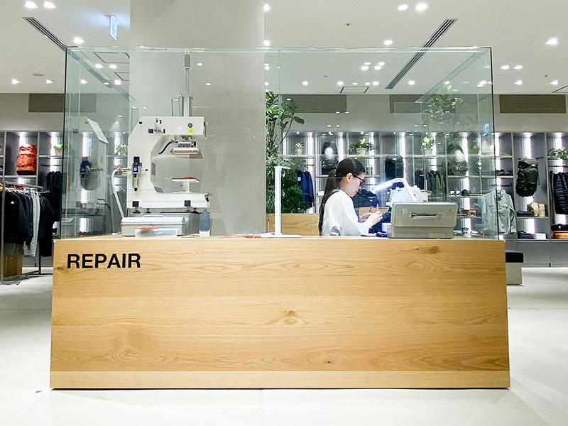これまでゴールドウインは、手入れやリペアを行うことで製品寿命を延ばし、長く大切に着てもらう、使ってもらうことを推奨してきました。中でも、キッズアイテムや「Goldwin」ブランド製品は無料でリペアを行っており、直営店である「THE NORTH FACE CAMP」(東京都渋谷区恵比寿)や「THE NORTH FACE+グランフロント大阪」(大阪市北区)では、気軽に製品のリペアについて相談ができる常設型のリペアサービス“REPAIR”を設置するなどの取り組みを行ってきました。
