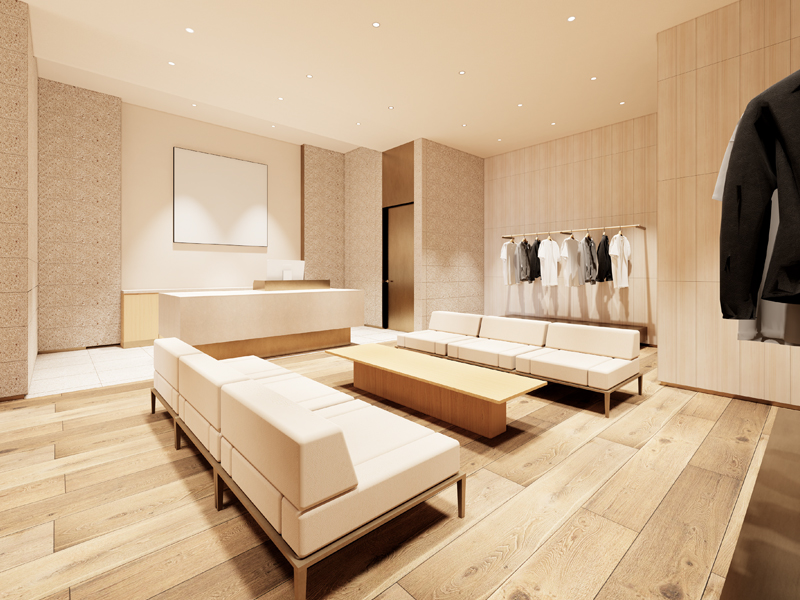 自然が生んだマテリアルと、人が生んだ構築の知恵。二つの「積層」が交差して、温もりと洗練とが共存するこの空間は、訪れる人をブランドの探究心と深く対話する世界へと誘います。