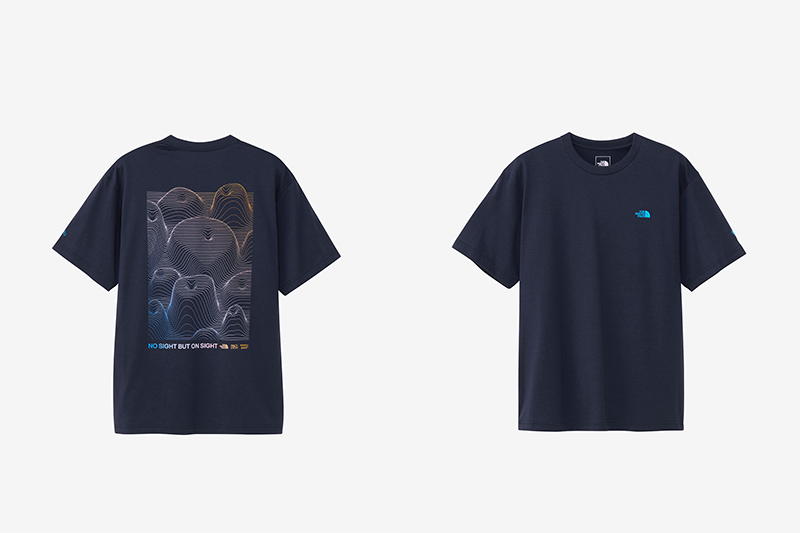 2025年モデルは音の「波長」からインスピレーションを得て、さまざまな波長の波をクライミングホールドや山に見立ててグラフィックに落とし込みました。パートナーと声を掛け合い、波長が重なり合うことで目の前の壁に挑む姿を抽象的に表現しています。左袖のモンキーロゴには、お猿のしっぽで周年を表す「20」がデザインされ、視覚障がい者がTシャツの前後を判別する目印にもなるよう刺繍が施されています。