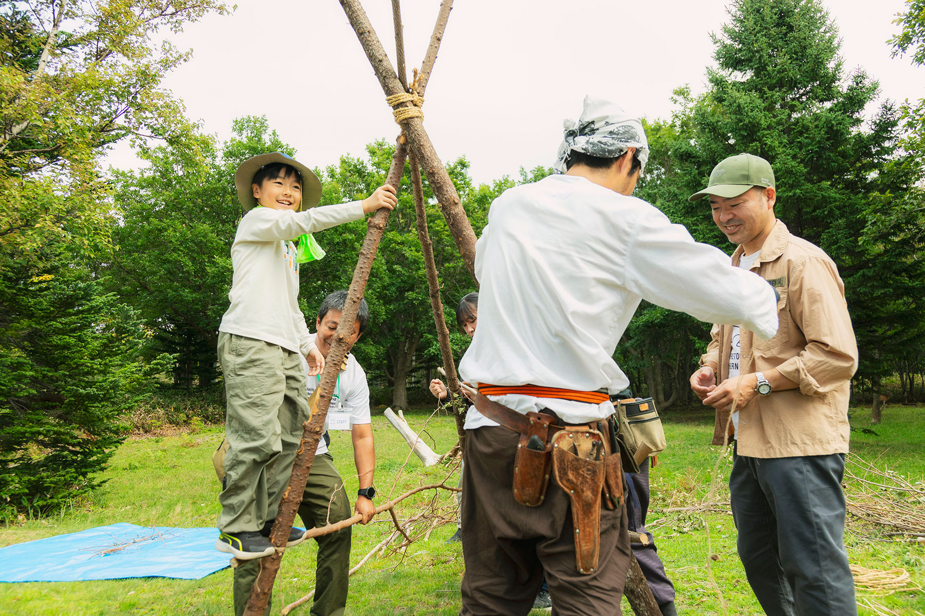 斜里会場では、日本の伝統的な茅葺職人とともに笹を素材にしながら子どもも楽しめるアート的空間を創出するほか、アウトドア映画祭やアスリートとともにフィールドアクティビティを体験。羅臼会場では地域の特産品を生かした食事や、焚火トークが楽しめるキャンプイベントを実施。両会場間を連絡バスが運行し、参加者が二会場を行き来する形で開催されました。