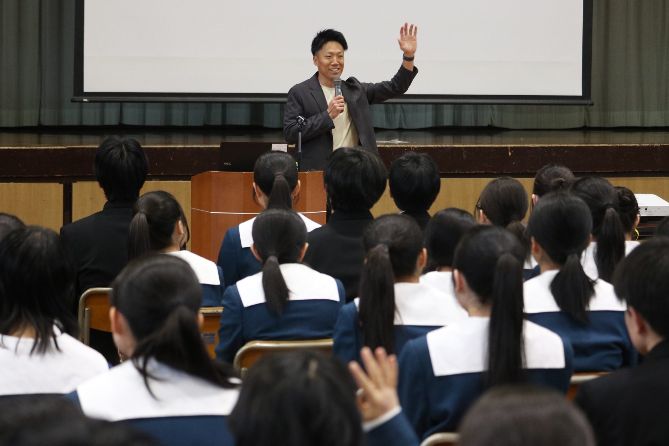 講演の締めくくりに、中山は「自分が輝ける道(挑戦できる場所)を探すこと」「自分が選んだ道であっても、必ず壁は訪れるが、それを乗り越える経験が成長につながる」というメッセージを送りました。進路選択が間近にせまっている生徒に対し、いつか困難にぶつかったときにこの言葉を思い出し、自ら覚悟をもって挑んでもらえたら嬉しいと語りました。