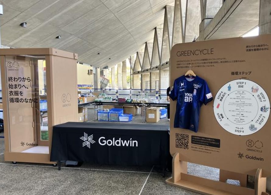 2024年度は、大会前日に開催される「富山マラソンEXPO2024」において、スポーツウエアを長く使うこともサステナブルな取り組みのひとつであるとの考え方から、今年も「Goldwin Pop Up Factory」を展開。EXPOでは初めてとなる「参加賞Tシャツのカスタマイズ」と、メーカーやブランド問わず不要な衣服の回収を例年通り実施しました。今年は合計で268kgの衣類を回収し、リサイクルしました。また、破れてしまったタイツやウインドブレーカーなどがどのように修理されているか、実際の製品の展示とともにリペアサービスの紹介も行っています。