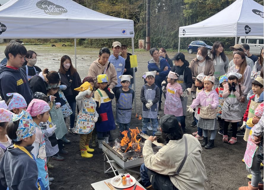 また11月21日には箱根町在住の5歳児(年長)を対象とした「HAKONE TOWN×GOLDWIN HAKONE Outdoor Experience Class」を開催しました。箱根町の幼稚園・保育園・こども園に登園している子どもたち41名が参加し、アウトドアコーディネーターの小雀陣二さんと一緒に箱根の間伐材の薪を用いた焚火での料理を楽しみました。