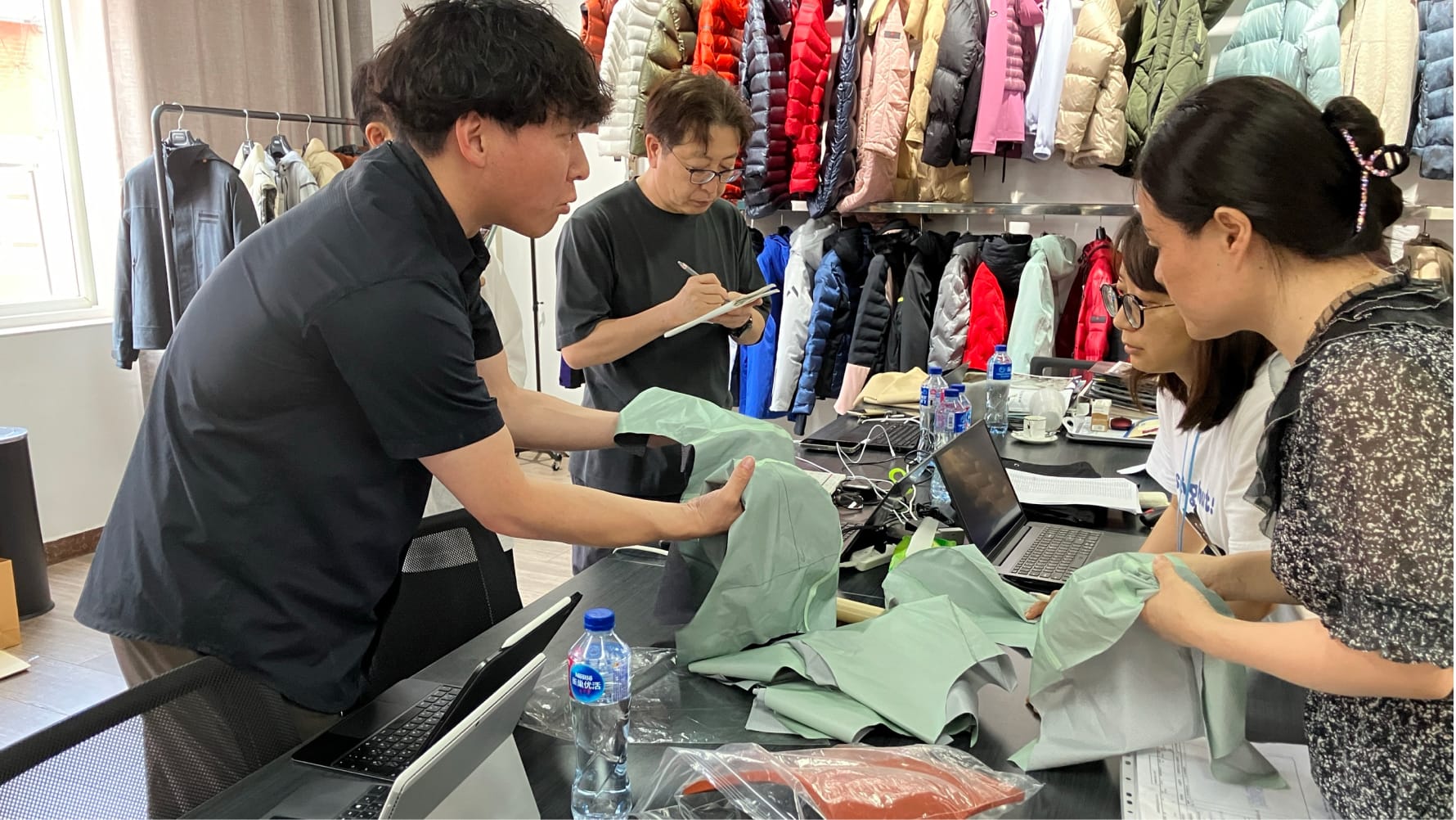 ゴールドウインでは、サプライヤー工場を訪問し、当社「製品品質基準」における技術指導や品質改善指導を行う品質会議を定期的に実施しています。2024年度には17工場に対し、合計61回の専門スタッフ派遣を行いました。サプライヤーとの品質会議はシーズン毎に実施し、受入検査での不良内容や営業不良返品での不良内容をデータと画像で共有し改善を求めています。具体的には、縫い糸切れ、カシメ打ち不良、プリント・転写不良などの不良内容について品質改善指導を行っています。また、生産技術の面では富山のマザー工場で新素材の加工方法の確認と開発を行っており、そのノウハウを生産工場へ指導・技術供与しています。サプライヤーからも難易度の高い素材については指導要請があるなど、細やかな連携を図っています。